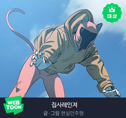 이번에 대상으로 선정 된 ‘집사레인져’는 평범한 여고생이 고양이에게 변신 시계를 받고 고양이 수트를 입은 집사레인져로 변신해 고대병기 롱캣에 맞서며 위기에 처한 지구를 지킨다는 내용을 담은 작품이다. 고양이 판타지와 병맛 소재를 열혈 연출로 찰떡같이 소화해 참신함과 대중적 재미를 함께 잡았다는 심사평과 함께 상금 1억원의 주인공이 됐다. 현실안주형 작가는 ‘작품을 통해 세상의 여러가지 편견을 비틀어 보여주고 싶었다.’고 기획 의도를 밝혔다.