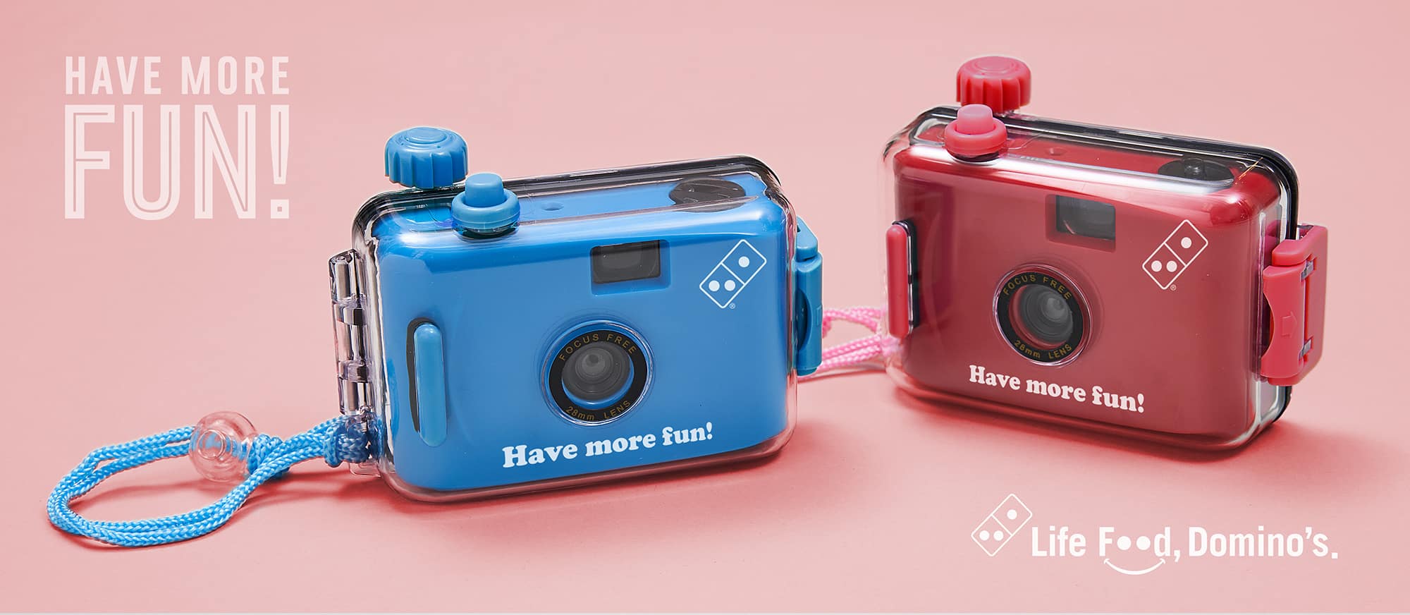 도미노피자는 지난 22일부터 이틀간 만 19세 이상 온라인(홈페이지, 모바일, 웹, 어플) 회원들을 대상으로 선착순 5천명에게 방수 토이카메라를 제공했다. 이 굿즈는 빨간색과 파란색 2가지로, 방수 케이스를 함께 제공해 물놀이 시에도 사용할 수 있도록 했으며, 회원들의 성원에 힘입어 이벤트 실시 하루 만에 준비한 모든 물량이 소진됐다.