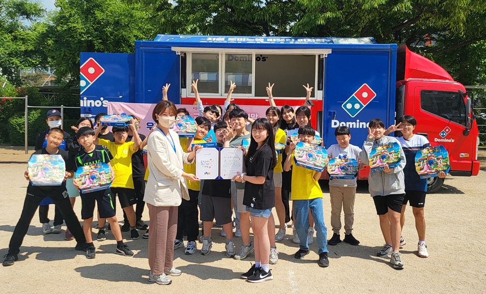 도미노피자는 매월 우수 학급에 피자 제조 시설이 탑재된 파티카를 전달하고, 일부 참여 학급에 도미노콘을 지급하고 있다.