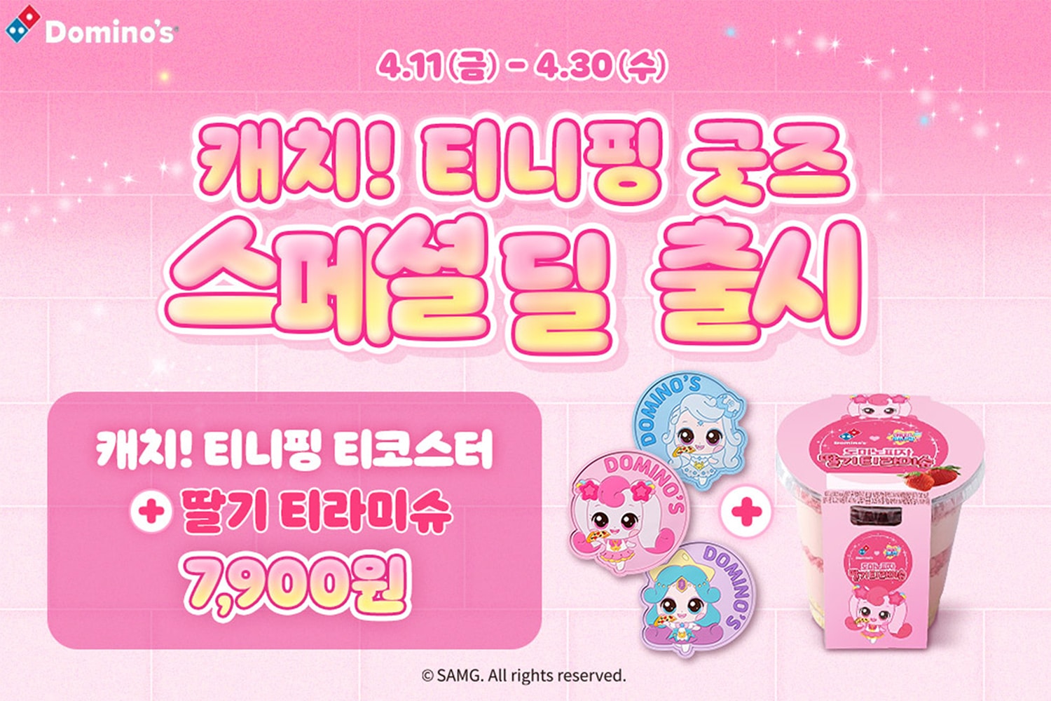No.1 세계 배달 피자 리더 도미노피자가 SAMG엔터의 인기 IP 티니핑 굿즈도 구매하고 새콤달콤한 디저트 메뉴를 맛볼 수 있는 ‘캐치! 티니핑 굿즈 스페셜 딜’을 진행한다.