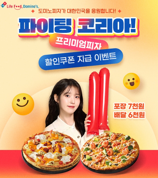 이번 ‘파이팅 코리아’ 프로모션은 오는 18일(월)부터 10월 8일(일) 프리미엄 피자(L) 주문을 완료한 온라인 회원을 대상으로, 배달 6천 원, 포장 7천 원 쿠폰을 지급한다. 이 쿠폰은 주문 다음 날 지급되며 쿠폰은 발급일로부터 30일 동안 사용 가능하다. 배달 쿠폰 사용 시 배달 최소 주문금액 1만 7천 원을 충족해야 한다.