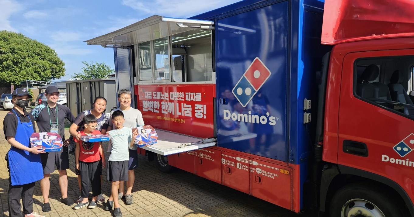 No.1 세계 배달 피자 리더 도미노피자가 지난 2일(토) 서울 뚝섬유원지에서 진행된 한강 힐링 나눔 체험 프로그램에 파티카를 보내 피자를 전달했다.