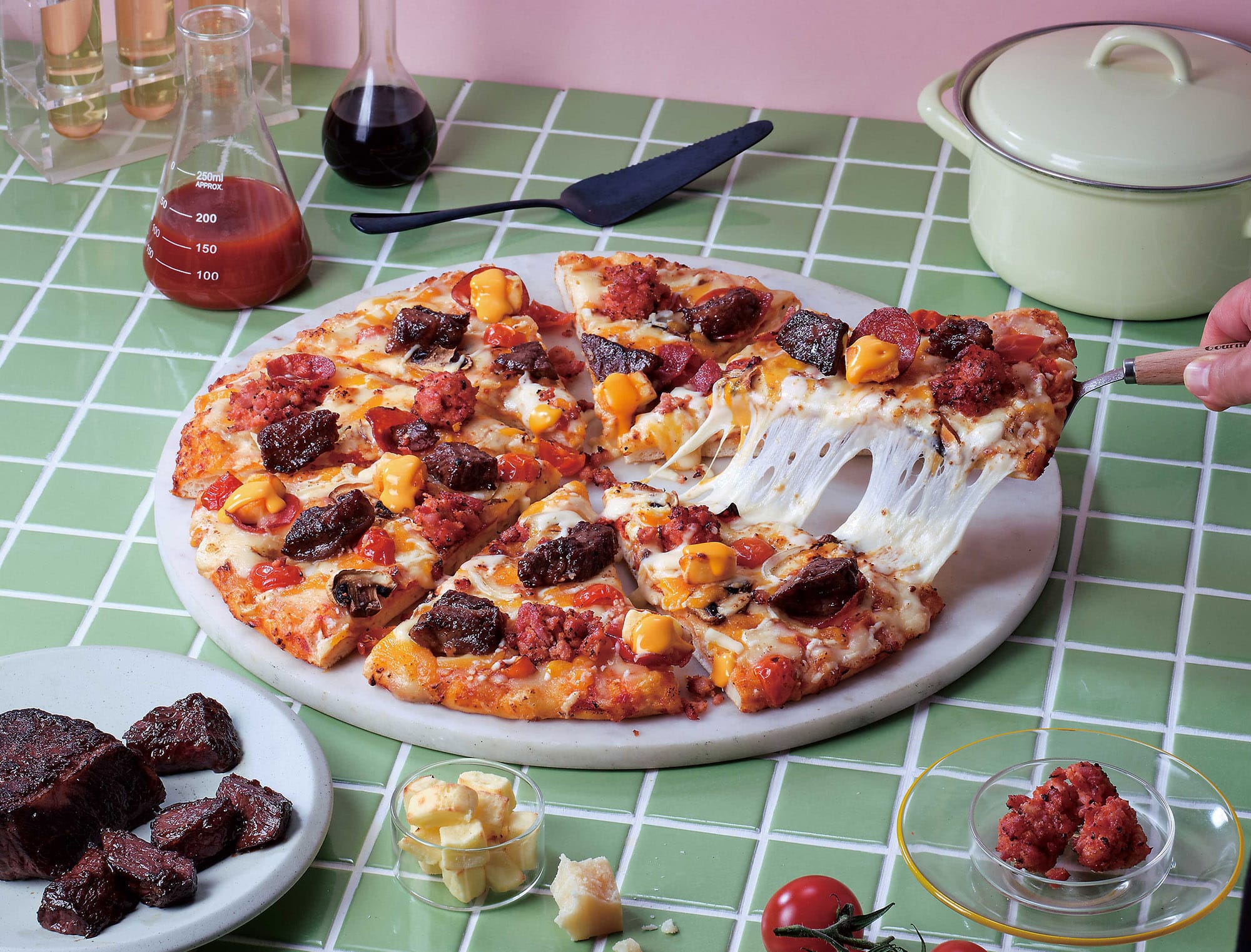 도미노피자의 ‘K-Rib & 치즈피자’는 한국식 스테이크에 데미그라스 소스로 맛을 더한 K-Rib 스테이크와, 세계적인 인기를 끌고 있는 전속모델 손흥민의 시그니처 포즈를 형상화한 Sonny 큐브 치즈가 올라가 달콤함과 짭짤한 맛이 특징이다. 또한 미트 크럼블로 풍성함을, 아라비아타 소스로 매콤함을 살려 풍성한 제품 외관과 맛의 조화를 살렸다.
