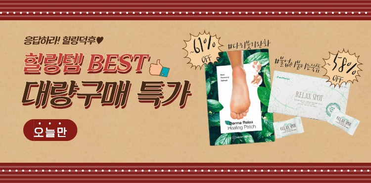 이번 이벤트는 고객 감사 할인 이벤트의 일환으로, 집에서 피로 관리를 즐기는 ‘셀프 힐링’ 마니아들을 위해 마련됐다. 오늘(4일) 0시부터 24시까지 단 하루 동안 국민 발바닥 패치 ‘더마릴렉스 힐링패치’와 불 없는 뜸 ‘셀프히팅 릴렉스팟’ 세트 상품을 각각 최대 67%, 56% 할인된 가격으로 판매한다.