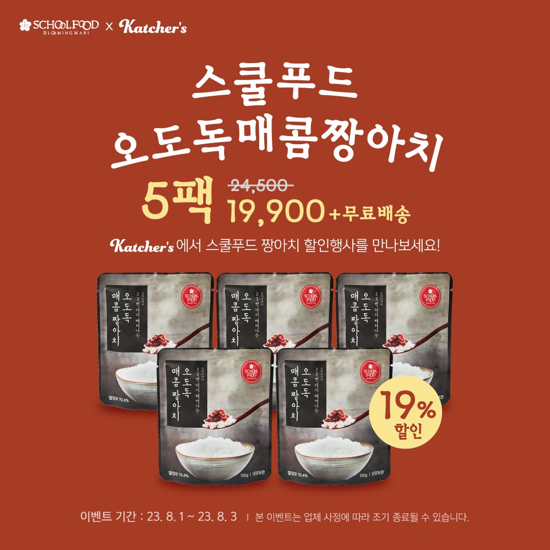 이번 할인 프로모션은 오늘(1일)부터 8월 3일(목)까지 캐처스 더블딜에서 스쿨푸드 ‘오도독매콤짱아치’ HMR(가정간편식) 제품 5팩을 19% 할인된 가격에 무료배송으로 만나볼 수 있다.