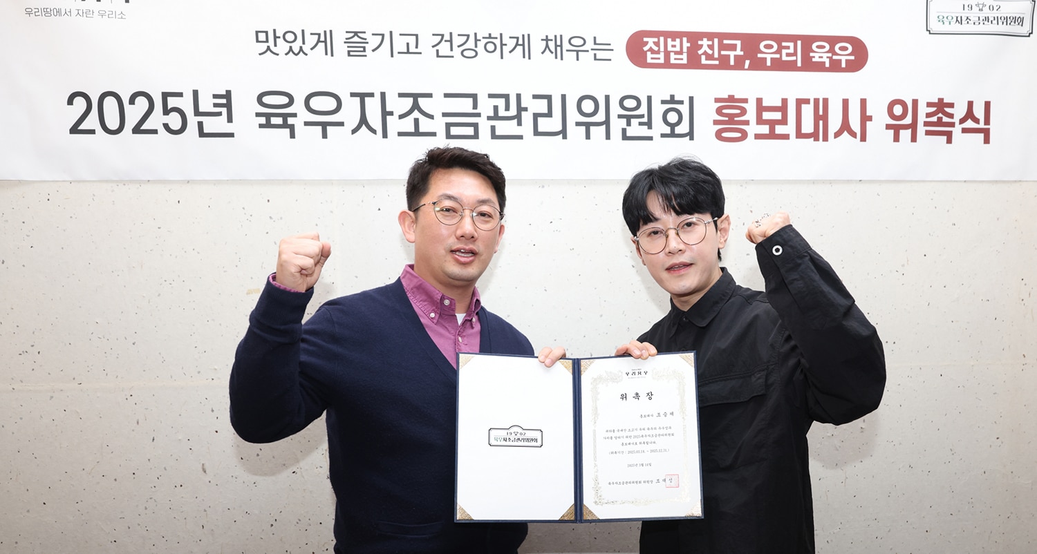 국내산 소고기 우리 육우의 우수성을 알리고 소비 촉진을 위한 육우자조금관리위원회(위원장 조재성)는 2025년 육우 홍보대사로 개그맨 조승제와 트로트 가수 ‘김경민’을 위촉했다고 25일 밝혔다.