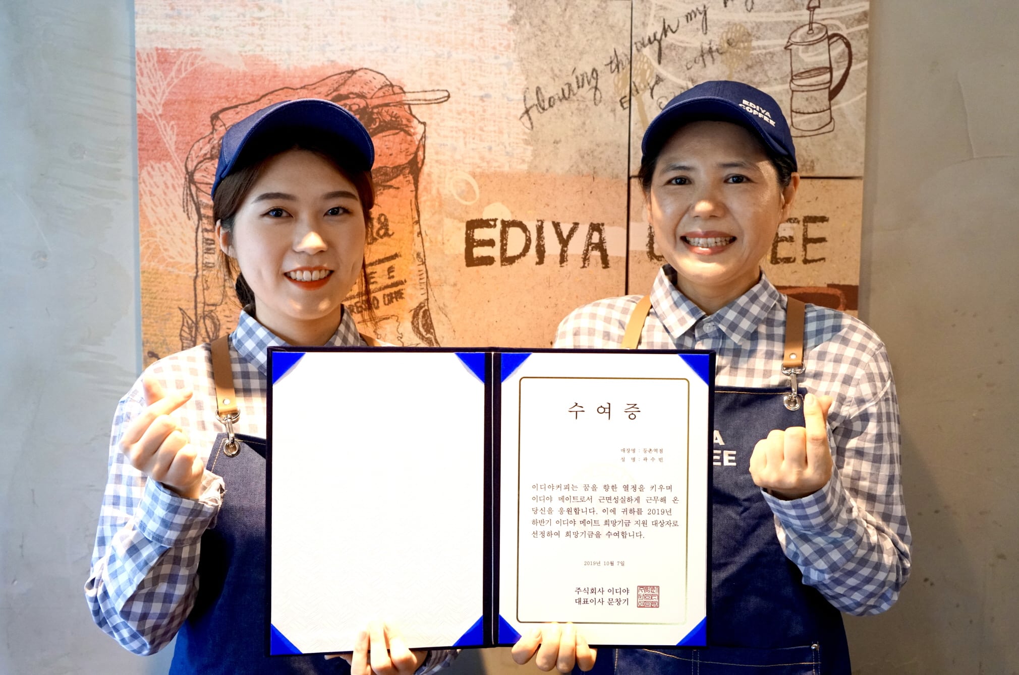 이디야커피(대표 문창기)가 매장 내 아르바이트생들을 대상으로 ‘이디야 메이트 희망기금’ 을 전달했다.
