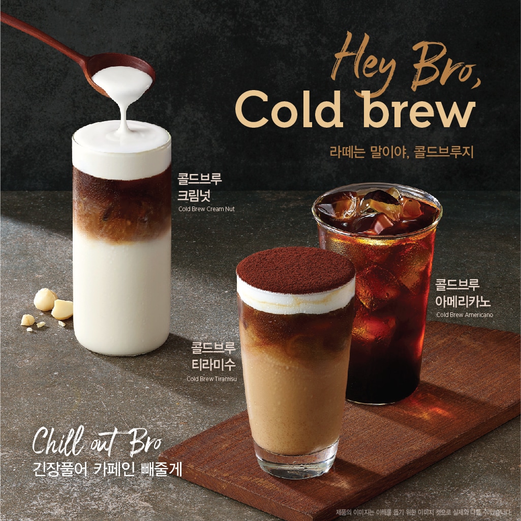 질소를 투입하여 서징 효과(Surging Effect, 폭포수 효과)를 낸 ‘디카페인 콜드브루 니트로’ 에서는 신선하고 부드러운 거품의 목넘김과 깊은 풍미를 느낄 수 있으며 ‘디카페인 콜드브루 화이트비엔나’는 달콤한 크림과 화이트 초콜릿 향, 아이리쉬크림 향이 더해진 제품이다. 이 외에도 중독성 강한 흑당과 고소한 우유가 어우러진 ‘디카페인 흑당 콜드브루’, ‘디카페인 버블흑당 콜드브루’와 베트남풍 연유에 밸런스 잡힌 콜드브루가 어우러진 ‘디카페인 연유 콜드브루’ 가 있다.