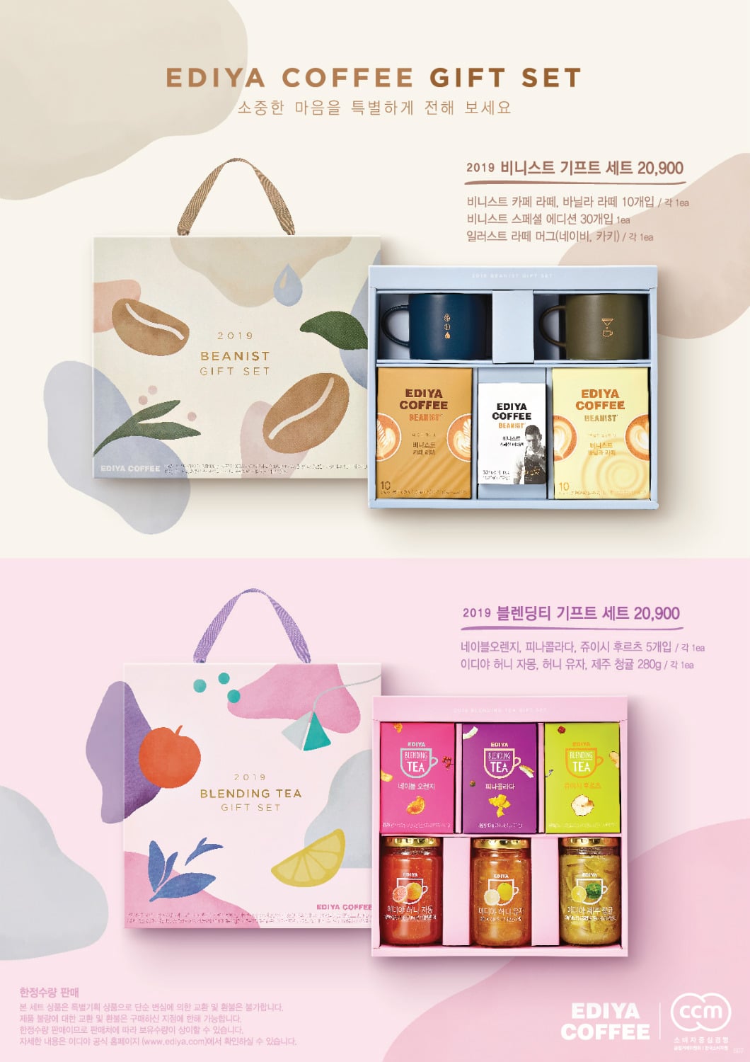 이디야커피 선물세트는 스틱커피 제품으로 구성된 ‘비니스트 기프트 세트’와 티(tea) 제품으로 구성된 ‘블렌딩티 기프트 세트’ 2종이며 취향에 따라 선택해 선물할 수 있다. 이디야커피 전국 가맹점에서 고객들에게 검증 받은 인기 높은 제품으로 구성됐으며 20,900원의 합리적인 가격대로 판매한다.