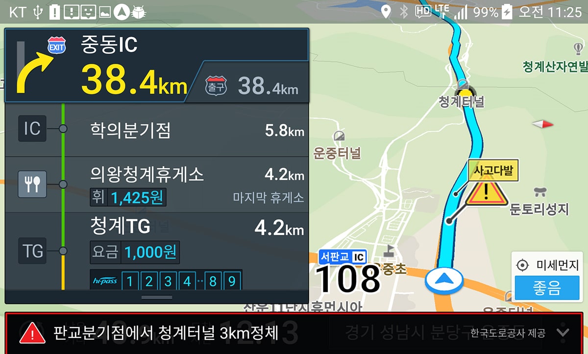 정체된 고속도로 속, 주행 정보로 빠르게 탈출하자