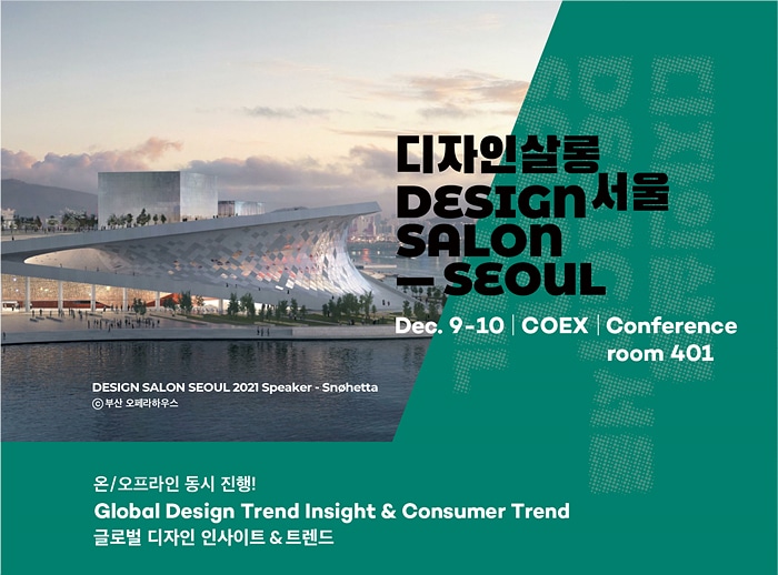 한편, 디자인살롱 서울과 동시 개최되는 ‘2021 홈·테이블데코페어’는 최신 인테리어 트렌드부터 감각적인 리빙 브랜드까지 홈 스타일링의 모든 것을 한자리에서 만나 볼 수 있는 프리미엄 홈 스타일링 전문 전시회로, 오는 12월 9일부터 4일간 서울 삼성동 코엑스(COEX)에서 만나볼 수 있다.