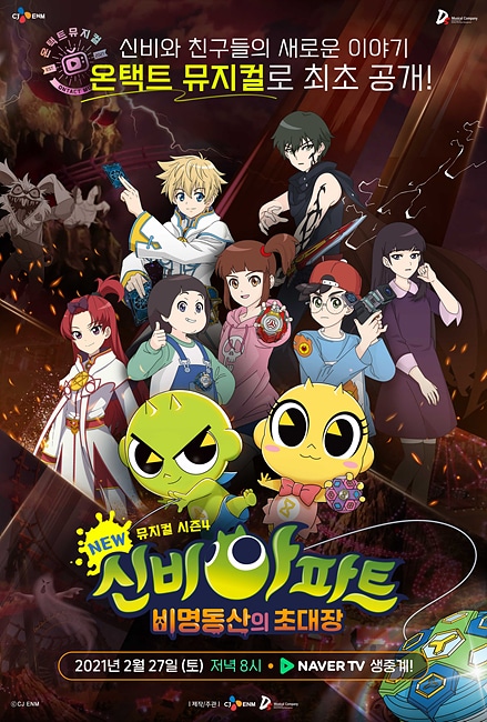 CJ ENM 애니메이션사업부는 뮤지컬 ‘신비아파트’ 네 번째 시즌을 온택트 뮤지컬 형태로 첫 선을 보인다고 밝혔다. 내달 27일 저녁 8시 최초로 선보이는 ‘신비아파트 뮤지컬 시즌4: 비명동산의 초대장’은 현장 관중 없이 라이브 생중계하는 온택트 공연으로 진행된다.