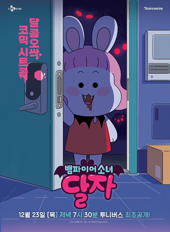 CJ ENM 투니버스는 신작 애니메이션 ‘뱀파이어소녀 달자’를 내년 초 정규 편성에 앞서 오는 12월 23일(목) 저녁 7시 30분에 스페셜 편성으로 먼저 선보인다고 밝혔다.