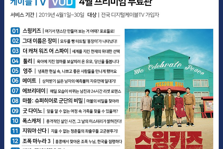 케이블TV VOD, 4월 <스윙키즈> 등 인기 VOD 13편 무료
