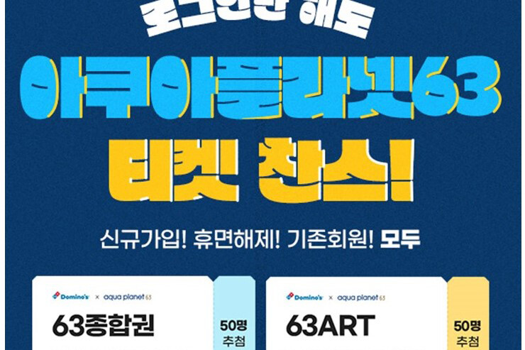 도미노피자, 로그인만 해도 아쿠아플라넷63티켓 증정!