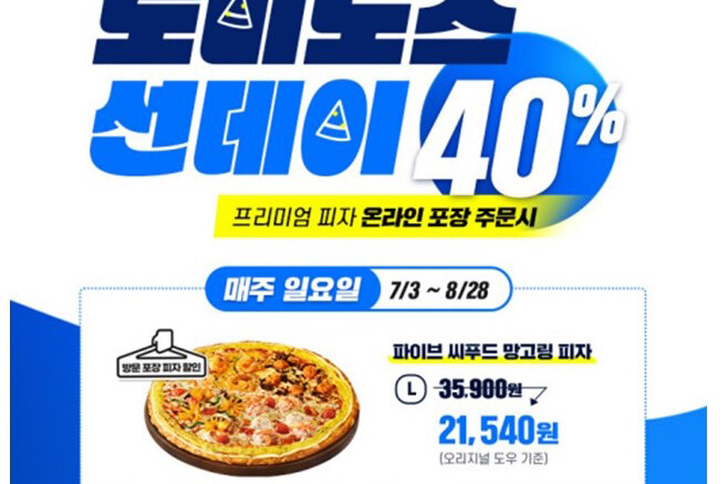 도미노피자, 매주 일요일 프리미엄 피자 40% 할인
