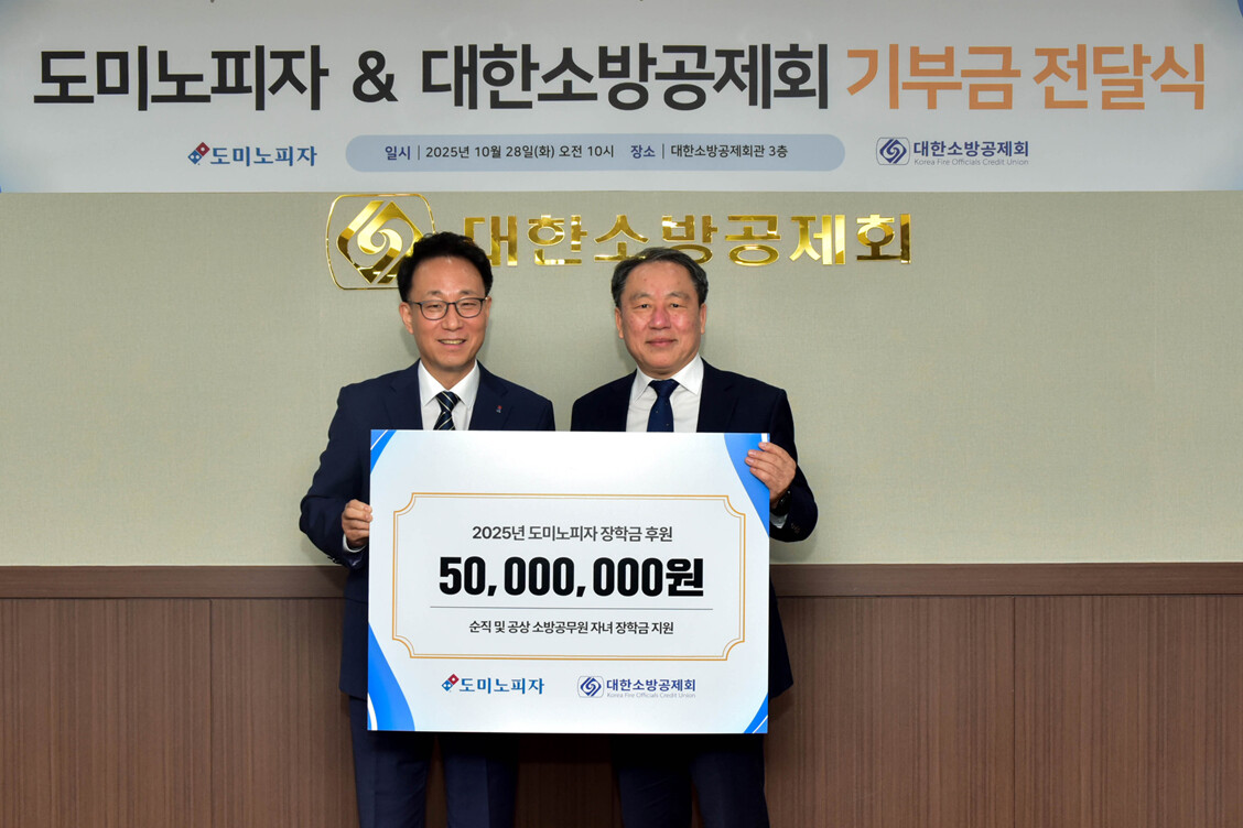 한국도미노피자, 순직·공상 소방공무원 자녀 위한 기부금 전달