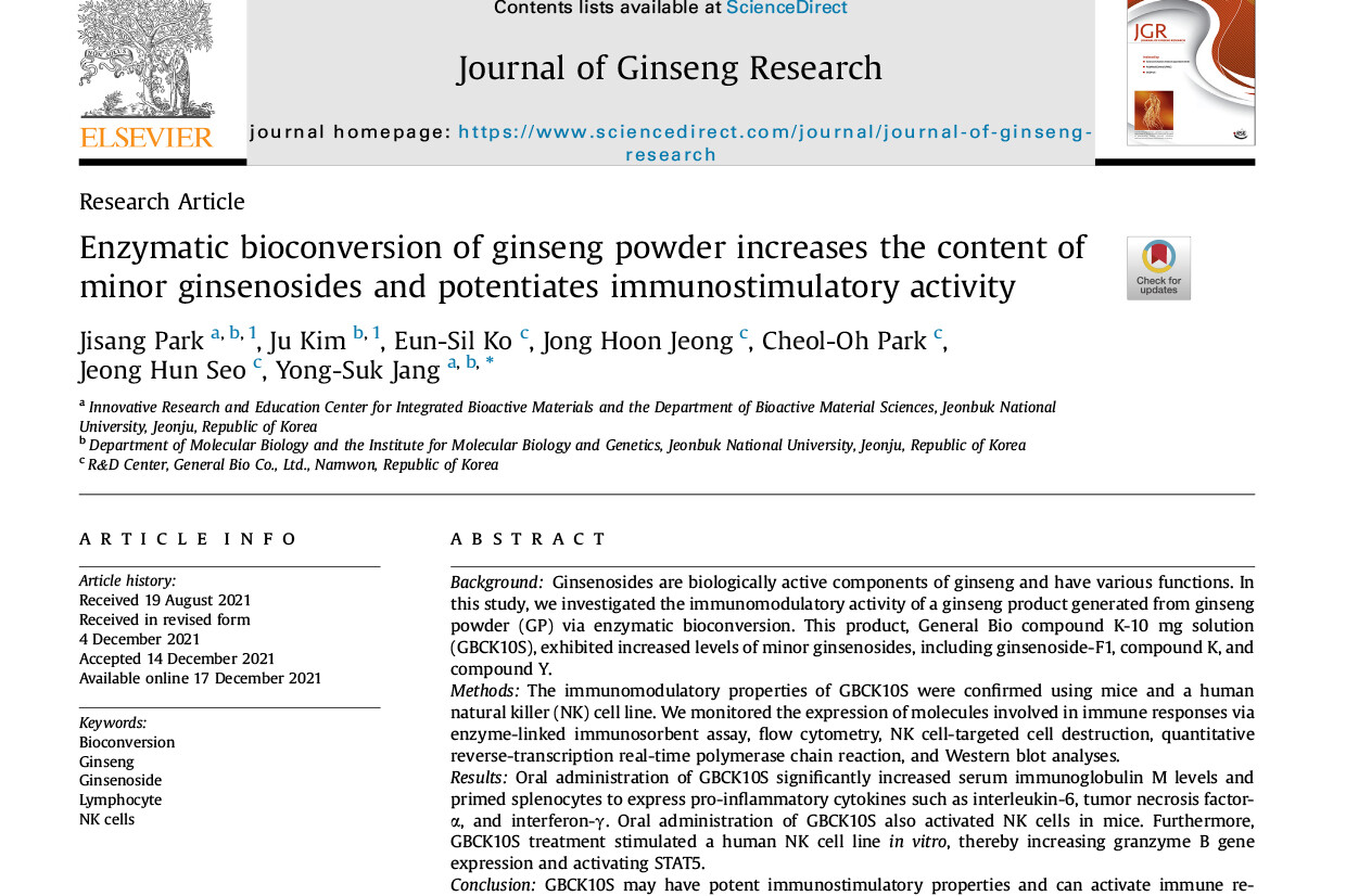 제너럴바이오-전북대학교 연구진, 인삼 연구 성과 고려인삼학회지’ 게재
