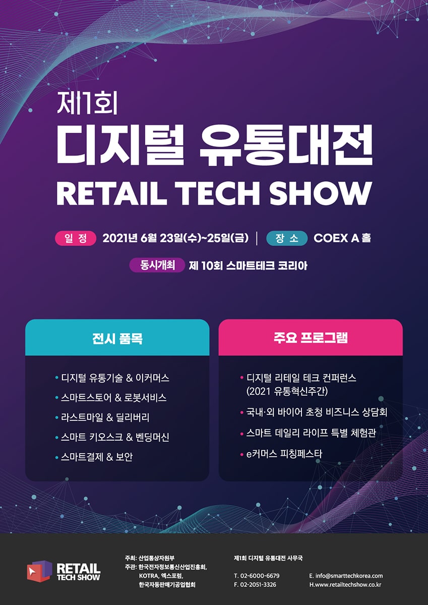 한편, 디지털유통대전은 대한민국 대표 융복합 행사인 ‘제10회 스마트테크 코리아’와 동시개최되어 스마트 기술과 인공지능, 메타버스 등 다양한 분야의 산업별 트렌드와 어우러져 오는 23일부터 서울 삼성동 코엑스에서 3일간 개최되며. 6월 18일까지 홈페이지 사전등록을 하면 간편하게 전시장 입장이 가능하다.