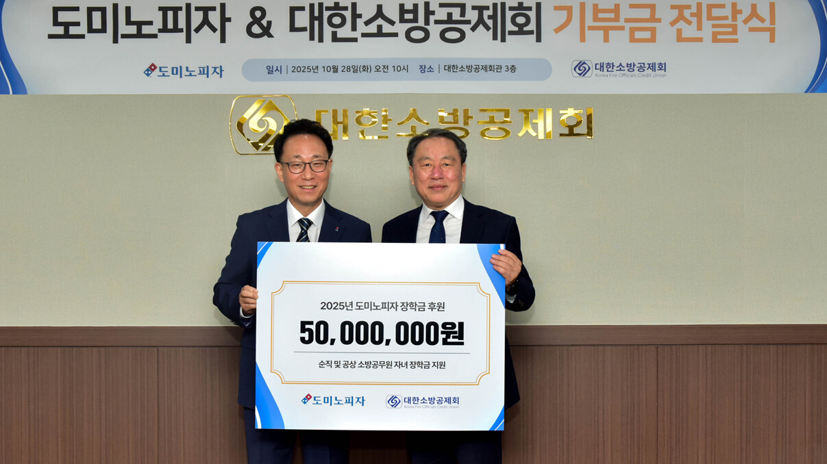 한국도미노피자, 순직·공상 소방공무원 자녀 위한 기부금 전달