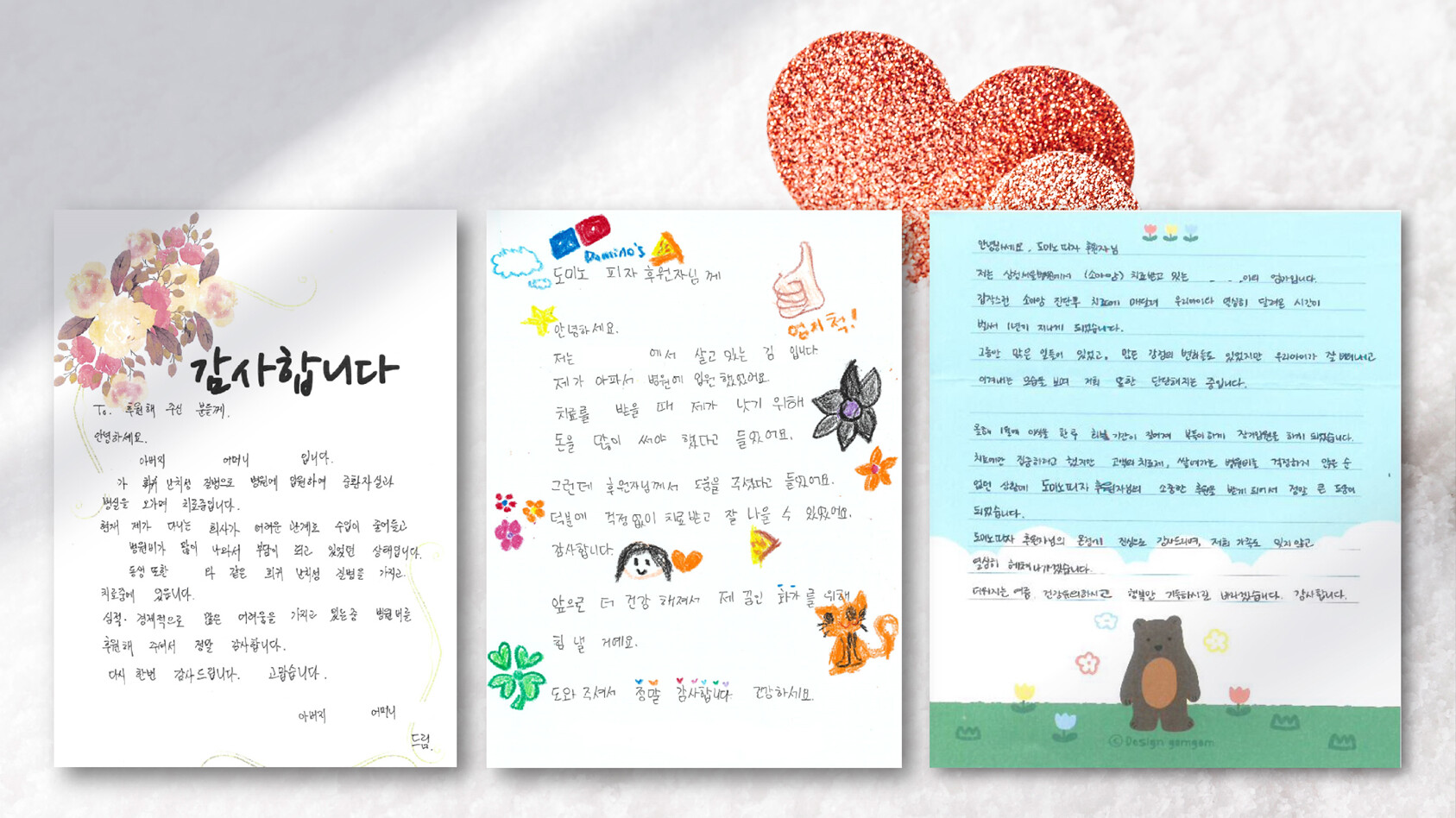 도미노피자, 연말 환아들의 감사 편지 받아