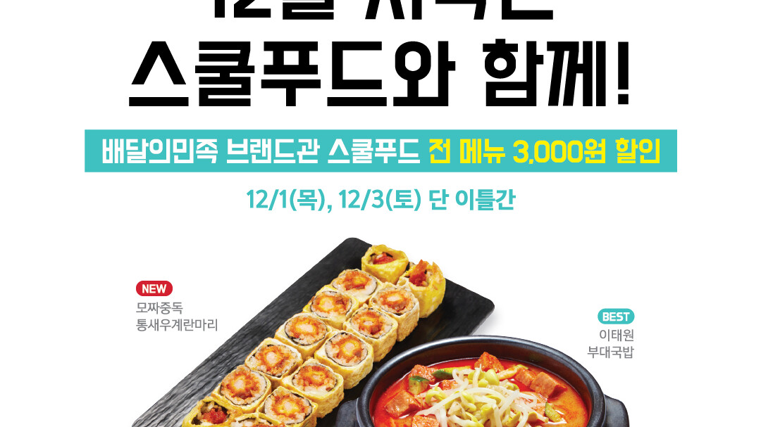 스쿨푸드, 12월 배달의민족 할인 이벤트 진행