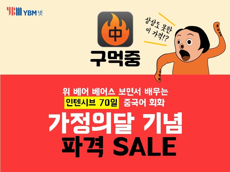 교육기업 YBM넷(대표이사 오재환)이 자사 인기 중국어 회화 앱 ‘구어먹는 중국어(이하 구먹중)’를 파격적으로 할인하는 이벤트를 진행한다.
